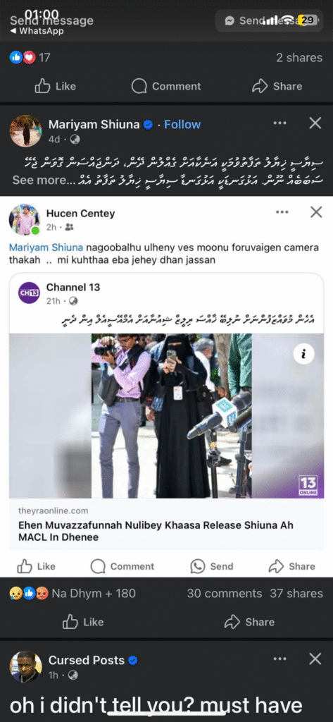 ވެރިކަންކުރާ ޕީއެންސީގެ އެކްޓިވިސްޓް މަރިޔަމް ޝިއުނާ ދަންޖައްސަން ސޯޝަލްމީޑިއާގައި ގޮވައިލި މައްސަލަ ފުލުހުން ބަލަން ފަށައިފިއެވެ.