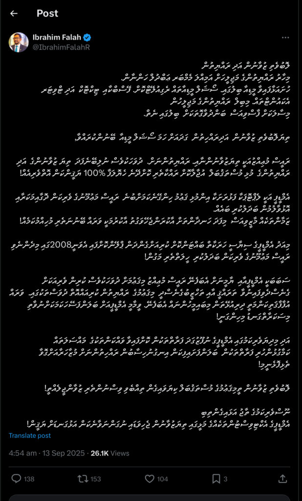 އެކްސްގައި އޭނާ ކުރެއްވި ޕޯސްޓެއްގައި ވިދާޅުވީ، ތުޅާދޫ ދާއިރާގެ އަމިއްލަ މެމްބަރު އަބްދުލް ހަންނާނު ހުށަހަޅުއްވާފައިވާ އެ ބިލު ފާސްވިއަސް، ފޭސްބުކާއި ޓިކްޓޮކް އަދި ޓްވިޓާ ފަދަ ސޯޝަލް މީޑިއާ އެކައުންޓުތައް ބަންދުވާ ގޮތަކަށް ނެތް ކަމަށެވެ. އެހެންކަމުން، “ގަދައަށް ސޯޝަލް މީޑީއާ ބޭނުންކުރަންވީ” ކަމަށް އޭނާ ވަނީ ބާރު އަޅުއްވާފަ އެވެ.